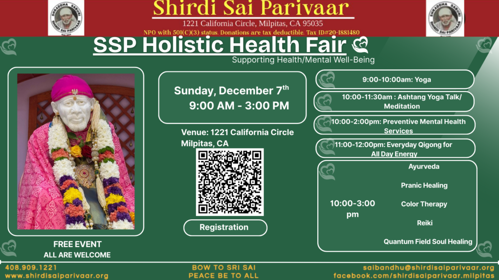 SSP is hosting Holistic Health Fair on Sunday, December 7th, from 9:00 AM to 3:00 PM.